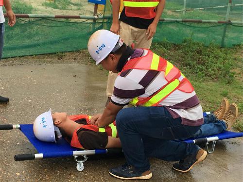 針對最近南昌暴雨天氣,南昌城投集團(tuán)公司沿江南大道南延項(xiàng)目部近日舉行了防洪防汛及觸電事故應(yīng)急安全演練,進(jìn)一步強(qiáng)化了應(yīng)急預(yù)案保障措施的落實(shí),提高了項(xiàng)目部應(yīng)對安全生產(chǎn)事故和突發(fā)事件的能力,教育員工如何正確、迅速處理突發(fā)事件。在安全演練中項(xiàng)目經(jīng)理負(fù)責(zé)統(tǒng)一指揮調(diào)度、分級分部門負(fù)責(zé),項(xiàng)目部經(jīng)理現(xiàn)場宣讀演練程序后,全體人員統(tǒng)一穿著工作服,在富山大道鋼筋棚和標(biāo)尾過水箱涵開展了觸電、防洪安全演練。